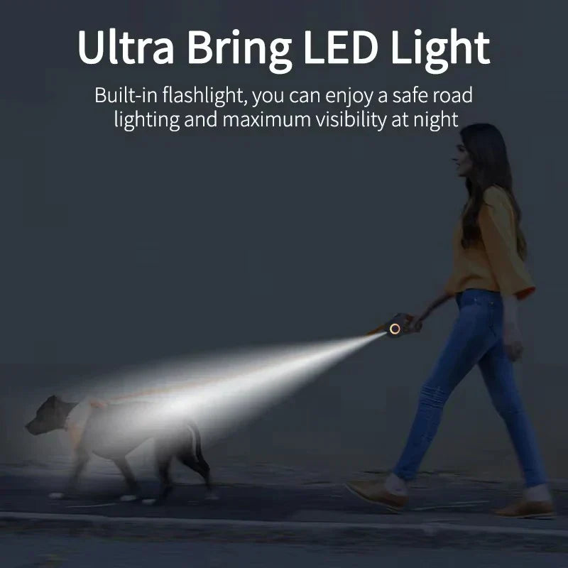 This automatic retractable dog leash features a smooth, reliable mechanism that extends and retracts seamlessly, giving your dog the freedom to explore while maintaining control. The strong, tangle-free cord rolls back into the casing quickly and quietly, allowing for hassle-free walks and reducing the risk of knots or tangles.